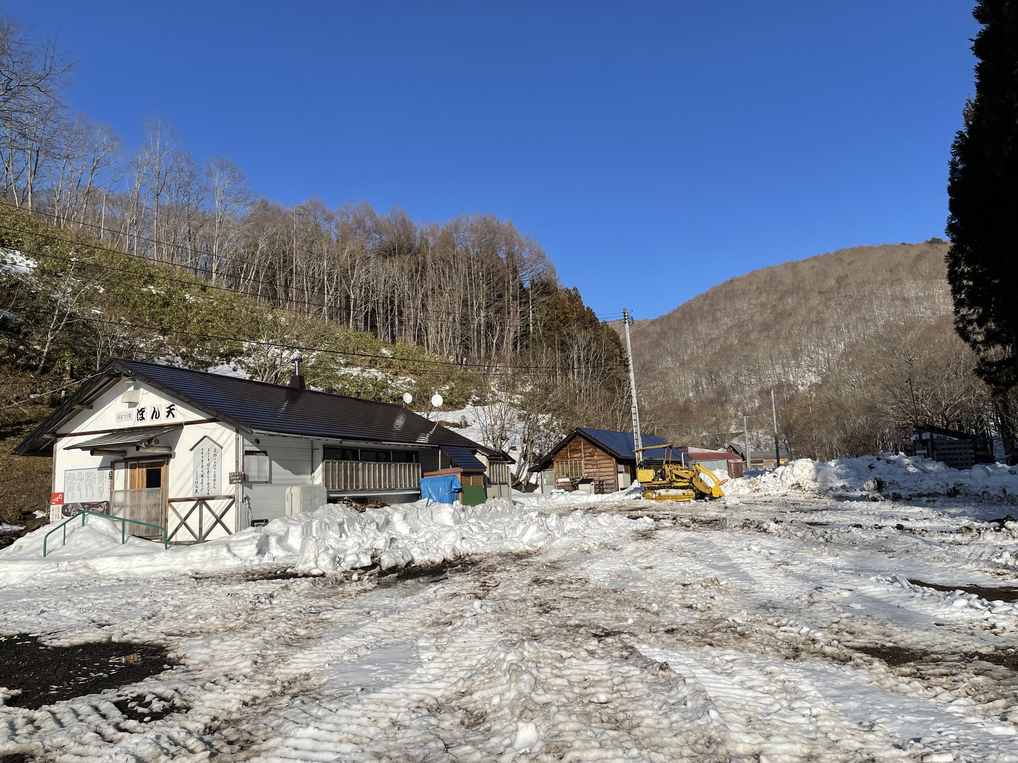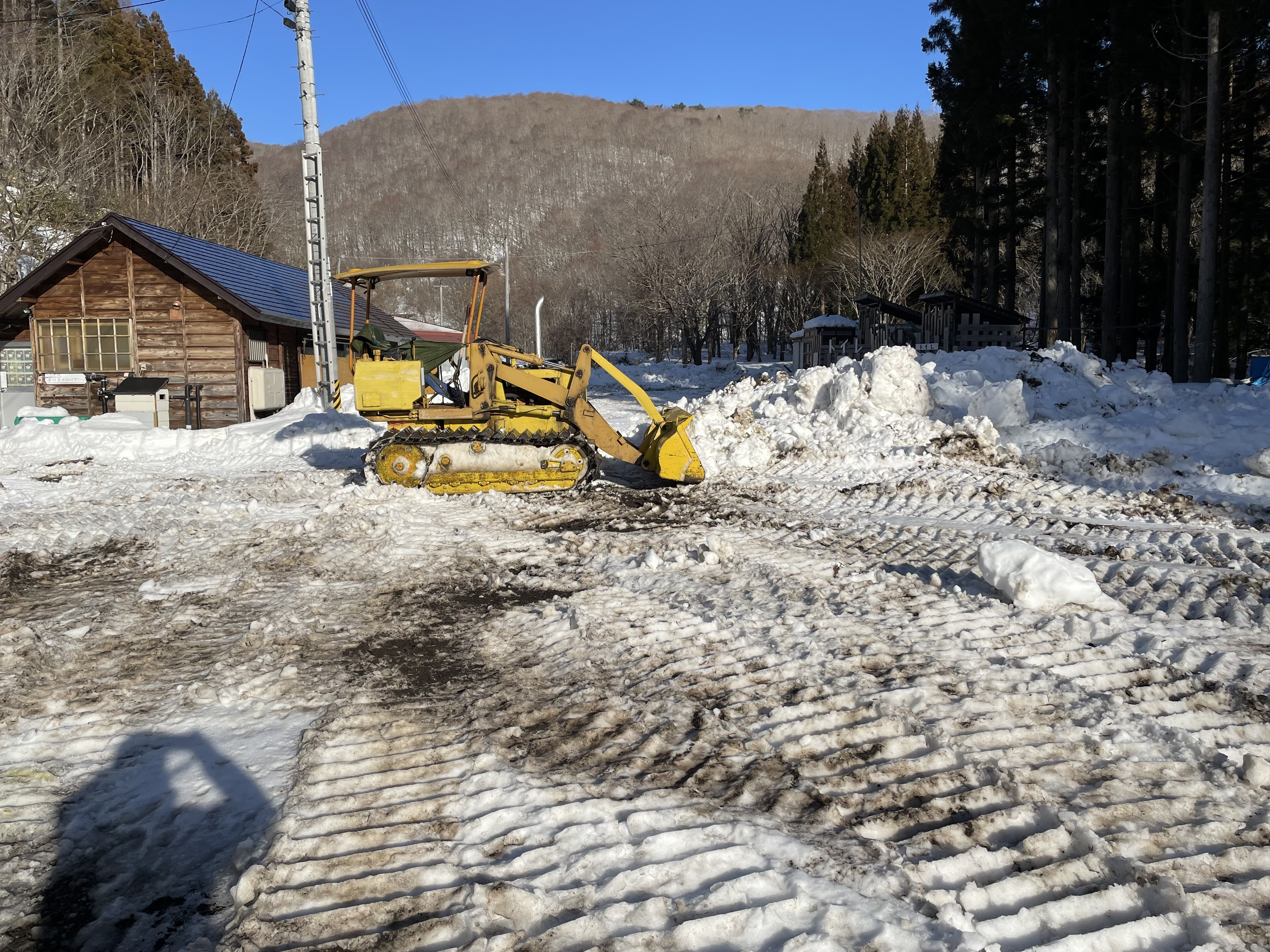 除雪頑張ってます、店の周りの除雪は先が見えてき後は道路だ、3月中旬には車で来れんべ。